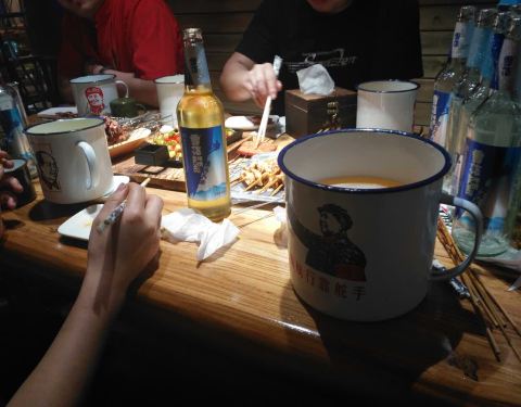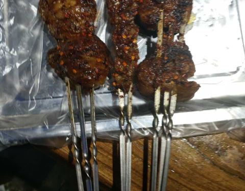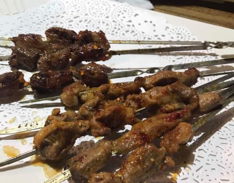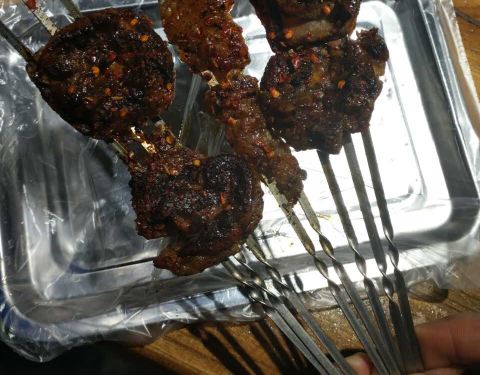 中午和小伙伴一起来撸串,这里环境很好,服务也很好,烤串便宜又好吃!4个人吃了不到200块钱!尤其推荐草原大肉干和烤猪皮,猪皮还可以选酸甜味和咸口太给力了!大肉干手口并用撕成肉丝慢慢嚼越嚼越香!但是牙口不好的甚点呀,干吧瘦也是很费牙的!铁板鲫鱼完全入味!边缘鱼刺都烤酥了!锡纸茄子倒是不太喜欢没怎么入味呢-_-# 喜欢这里!西安路附近撸串这里很赞啊^_^