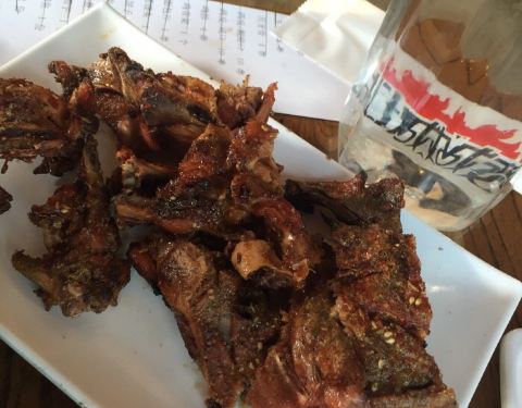 江城老胖从长春到大连,果然还是很火,只是没了我最爱的翅尖和猪手。炒方便面酸甜口很好吃,烤羊排喷香