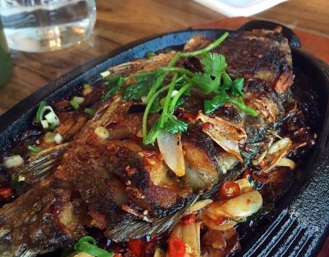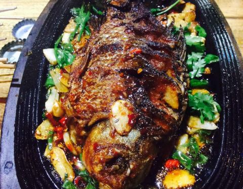 - 中午和小伙伴一起来撸串,这里环境很好,服务也很好,烤串便宜又好吃!铁板鲫鱼完全入味