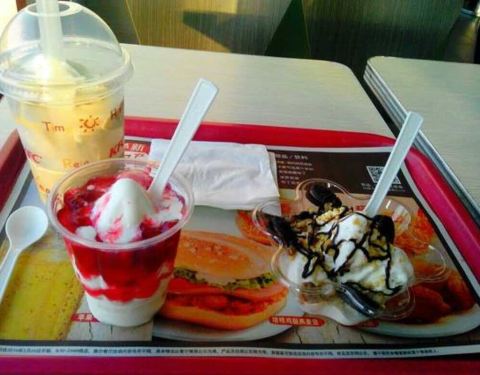 ...小聚会,点了鸡腿蛋挞和冰淇淋,冰淇淋香甜不腻,鸡腿现炸的很嫩,而且遇到做活动,还省了十几块钱呢