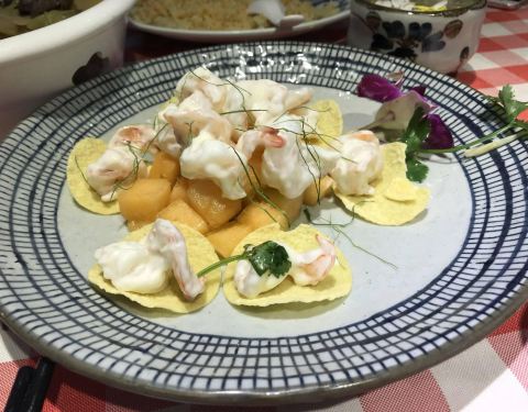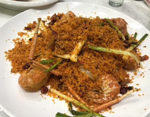 最好吃的就是冰镇芥末虾球,柚子牛腩也不错。