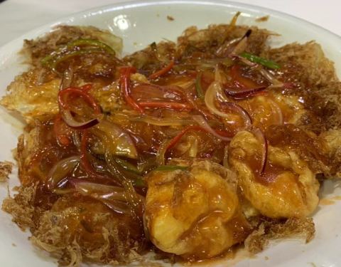 虽然食材平淡,到配料很足,酸酸甜甜挺开胃的。很好吃的说!味道正的很好!特别推荐炸蛋