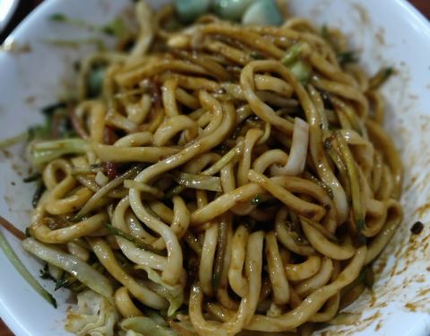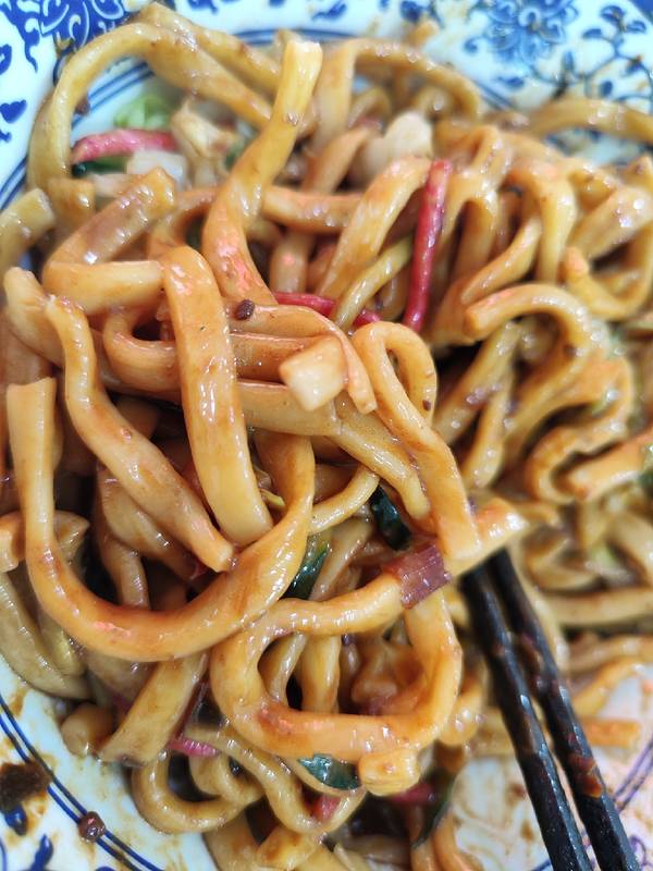 和酱拌在一起吃上一大口,并不会大呼好吃过瘾。 面看起来不软,但吃起来有点蘸口,不够劲道