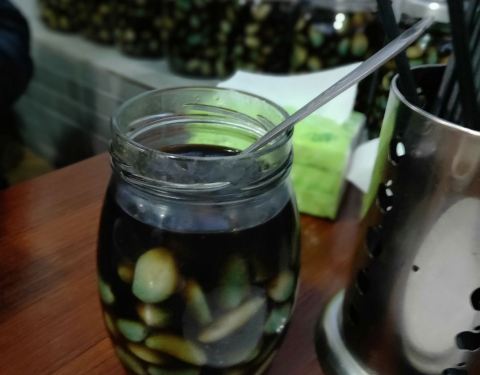 慕名而来,出了故宫坐了个电动摩的去的,20没商量。快六点的时候才走到胡同口,排队的人已经转弯,好在只有面,速度很快。面条很爽滑,主要炸酱很香,比海碗居的酱甜一些,很适合我们的口味,里面的腊八蒜绿绿的...