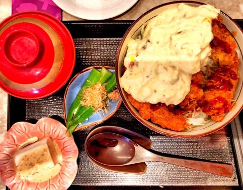 迪士尼小镇也基本逛完了 晚餐时间拔草这家新店 店内很日式 进门就看到一棵粉粉的樱花树 墙面上都是喷绘画 好多经典日本元素搭配 餐费还是比普通店稍贵的 在这儿用餐不能谈性价比 【亲子丼定食】42米。 主打的亲子丼 餐具很美 日式餐具总是惹人喜爱 食材选用的比较新鲜 鸡肉搭配鸡蛋和大葱洋葱盖饭上 鸡肉口感滑嫩 拌开后饭特别香浓 好吃 只是饭的温度还不够热 【胜丼定食】 也是套餐 其实就是滑蛋猪排饭 滑蛋是有调味的 猪排量不少 但是肉质还是偏干了些 随便吃吃还是可以的 总体而言 还是比较满意的日式小店 来迪士尼可以一试