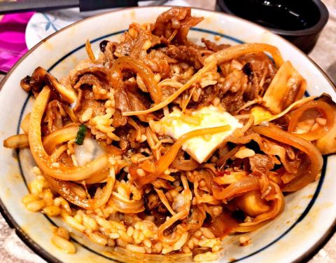 记得最早港汇开的时候还很想吃的呢,没想到在迪斯尼吃上了哈! 人均比港汇那家便宜不少研究了一下,应该是因为迪斯尼店没有海鲜丼~ 中午趁着大家都去看巡演了,出来觅食,居然还要排队,还好只要等一桌。 等了毛10分钟就可以入座了,后来队伍越来越长- - 坐了吧台位,正对着厨房哈~ 哈尼的#菌菇肥牛定食# 好好吃!料好足,菌菇和肥牛完美结合~ 我点了新品#日式塔塔吉列鸡丼# 真的是鸡肋到不行!是人都知道鸡是最便宜的了!价格居然和肥牛定食一个价格,上面的塔塔估计就是色拉油兮兮的,和炸鸡配在一起腻是腻得来…… 话说隔壁桌还问饭上的蛋怎么没熟,也是醉了…… 鸡丼不好吃!扣掉一星!总体还不错吧,服务态度也可以。