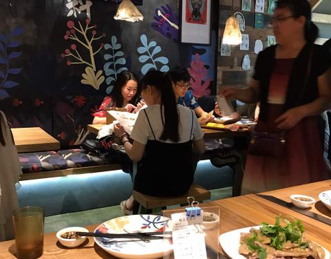 装修很特别,从门口到里面每个座位到餐具摆设都是花了很多心思,老板应该是搞艺术的或者是热爱这方面的吧[可爱],我喜欢这样的风格。点了招牌菜猛料鸭仔,还有几个菜,鸭的味道不错,嚼劲刚刚好,酱油的味道也刚...