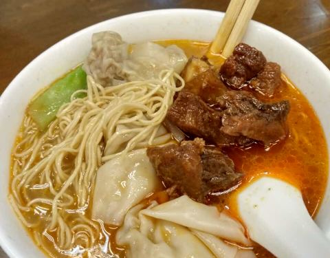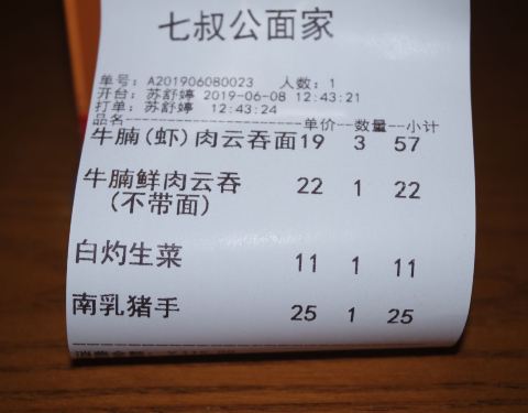 去澳门之前先垫垫肚子,搜了一下这家七叔公面家是连锁店,而且评价还不错,所以就去了这家。 不过我们口走错了,所以绕了好久,其实正门下来就能看到了。 点了牛腩和鲜虾云吞面,味道还可以,价格相比澳门便宜很多,总体满意。
