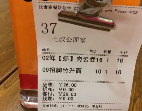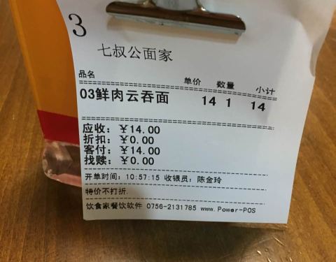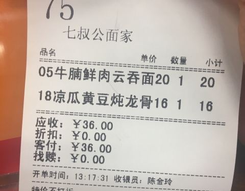 去澳门之前先垫垫肚子,搜了一下这家七叔公面家是连锁店,而且评价还不错,所以就去了这家。 不过我们口走错了,所以绕了好久,其实正门下来就能看到了。 点了牛腩和鲜虾云吞面,味道还可以,价格相比澳门便宜很...去澳门之前先垫垫肚子,搜了一下这家七叔公面家是连锁店,而且评价还不错,所以就去了这家。 不过我们口走错了,所以绕了好久,其实正门下来就能看到了。 点了牛腩和鲜虾云吞面,味道还可以,价格相比澳门便宜很多,总体满意。