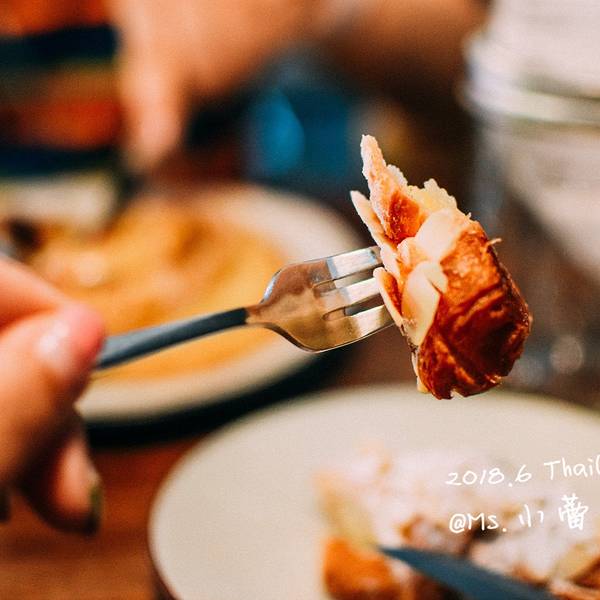 非常简洁利落的吧台 配着帅气的小哥哥 啊不 是淡黄色的灯光 非常好看 Menu的推荐饮品也很多 选了两种 名字忘记啦 但是因为都有照片 还有详细介绍 第一杯是有橙子和肉桂的冰咖啡;第二杯是混合了巧克力打底的冰咖啡Barista是一杯一杯送过来的 感觉就很好 有一种新鲜送上桌 要第一时间给顾客品鉴的感觉;专门有说不要搅拌第二杯 这样可以喝出巧克力沉淀的层次感 我们互相交换试了试 真的好喜欢!第一杯的口感非常浓郁丰富 肉桂的香气混合着咖啡的味道 后味中还有橙子的水果甜 交织在一起特别合适夏天;第二杯甜度会稍有一点多 对于我这个喝咖啡不加糖的人来说啦 阿敏就觉得很合适 而且越喝巧克力的口感会越来越重因为没有吃早餐直接过来的 所以点了一个杏仁可颂和肉桂卷(我真是迷之喜欢肉桂啊) 可颂和肉桂卷也非常好味道 可颂看起来很平常 可是切开的时候就可以看到起酥非常的整齐细密 黄油的香味也很高级 杏仁均匀大颗哦 我们两个人切来切去 也没有碎成渣渣 是很惊喜推荐啦;肉桂卷噢 我对肉桂卷真的没有什么要求 只要有肉桂 我就是无条件喜欢店门口还有一块 可以坐在外面的位置 应该是吸烟区吧店门口的砖墙招牌 来一个到此一游 五颗星推荐 Tips: Factory Coffee 地址:35/18 Phayathai Rd, Phaya Thai, Bangkok 10440 营业时间:8am–6pm