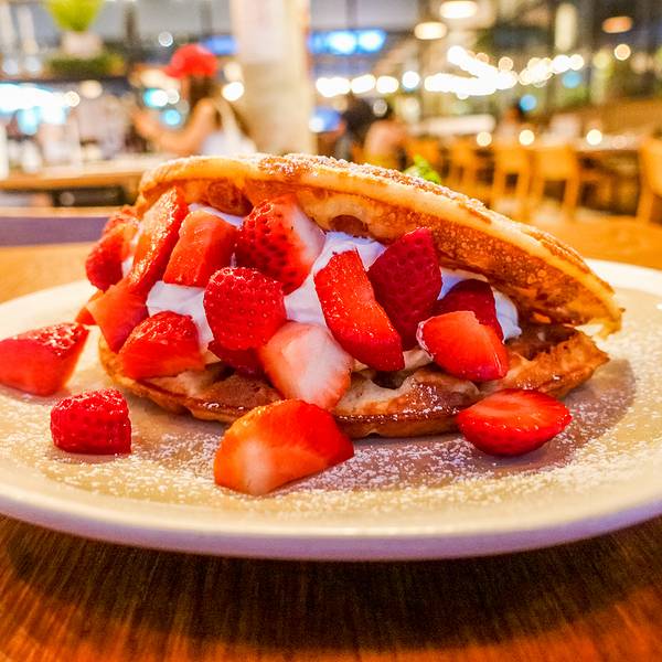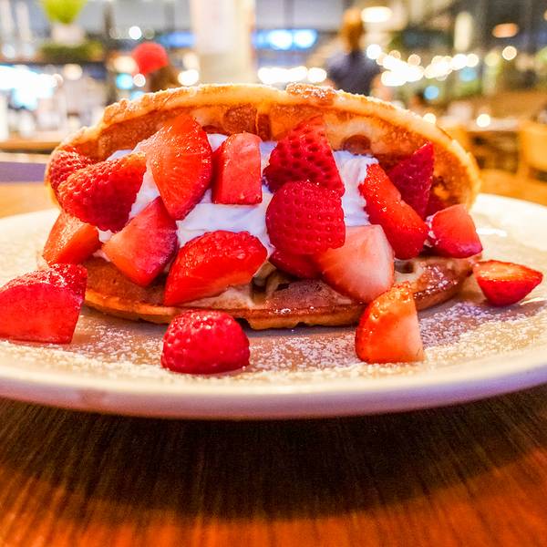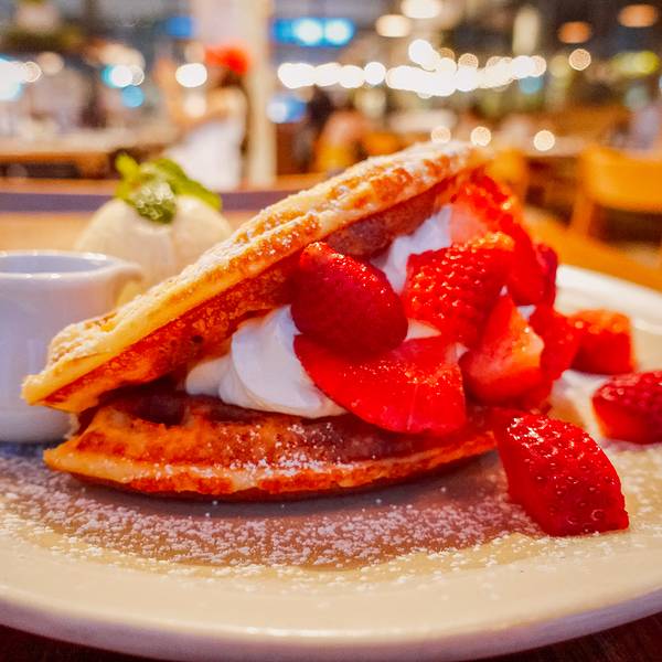 在曼谷期间吃到的最美味华夫饼,毫无疑问当属人气颇高的Roast,一众餐食的出品都极为出色,舒适轻松的氛围更是让人流连忘返,这被外媒评为曼谷最佳Brunch餐厅的地方果真名不虚传。Roast在曼谷有两家,一个在Em Qu...在曼谷期间吃到的最美味华夫饼,毫无疑问当属人气颇高的Roast,一众餐食的出品都极为出色,舒适轻松的氛围更是让人流连忘返,这被外媒评为曼谷最佳Brunch餐厅的地方果真名不虚传。Roast在曼谷有两家,一个在Em Quartier,另一个位于著名的垂直社区the Commons顶楼,我去的就是后者。餐厅采光极佳,设计感十足,带有浓烈的美式工业风,但又留有日式和风的简约,一种毫不违和的fusion感觉,打造出这片可以让人毫无约束、全身心放松的生活空间。一家外国顾客正在享受美食,服务员就给空出的椅子上摆出大大的玩具熊,旁边的小孩子甚是开心。暮色渐浓,餐厅以烛台外观的灯饰来增加室内亮度,同时也增添了更多的情趣。让人服气的是,就连菜单都设计成一本极为漂亮的时髦杂志,配图养眼、排版整洁,你能想到的所有细节,餐厅都会以非常考究的形式对应呈现。餐厅主打的饮品Roast Iced Tea,其实是一款荔枝口味的泰式奶茶,三颗迷你的荔枝果肉软滑鲜香,以荔枝汁替代糖分,整杯饮料更显清爽怡人,但回味中依旧留有传统泰式奶茶的雅致芬芳。最让我不可自拔的,正是这一盘要吹到爆的草莓松饼!丝滑鲜奶油,满满的草莓粒,搭配的松饼外脆里嫩、还带了些许的焦香,一切美好元素化作酸甜软糯的致命口感,最后再以一勺雪糕为收场,如此丰富多变的味蕾享受,恐怕连神仙都把持不住。主食同样可圈可点,一份海鲜意面做得极为地道,肉类是少了一些,但香浓的口感早已让我忽略这稍纵即逝的不满,如果细细品味,还能吃出隐藏的伏特加酒味道。