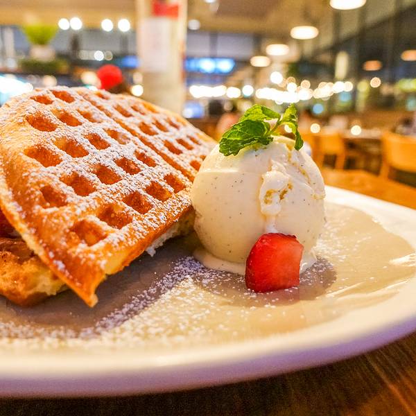 在曼谷期间吃到的最美味华夫饼,毫无疑问当属人气颇高的Roast,一众餐食的出品都极为出色,舒适轻松的氛围更是让人流连忘返,这被外媒评为曼谷最佳Brunch餐厅的地方果真名不虚传。Roast在曼谷有两家,一个在Em Quartier,另一个位于著名的垂直社区the Commons顶楼,我去的就是后者。餐厅采光极佳,设计感十足,带有浓烈的美式工业风,但又留有日式和风的简约,一种毫不违和的fusion感觉,打造出这片可以让人毫无约束、全身心放松的生活空间。一家外国顾客正在享受美食,服务员就给空出的椅子上摆出大大的玩具熊,旁边的小孩子甚是开心。暮色渐浓,餐厅以烛台外观的灯饰来增加室内亮度,同时也增添了更多的情趣。让人服气的是,就连菜单都设计成一本极为漂亮的时髦杂志,配图养眼、排版整洁,你能想到的所有细节,餐厅都会以非常考究的形式对应呈现。餐厅主打的饮品Roast Iced Tea,其实是一款荔枝口味的泰式奶茶,三颗迷你的荔枝果肉软滑鲜香,以荔枝汁替代糖分,整杯饮料更显清爽怡人,但回味中依旧留有传统泰式奶茶的雅致芬芳。最让我不可自拔的,正是这一盘要吹到爆的草莓松饼!丝滑鲜奶油,满满的草莓粒,搭配的松饼外脆里嫩、还带了些许的焦香,一切美好元素化作酸甜软糯的致命口感,最后再以一勺雪糕为收场,如此丰富多变的味蕾享受,恐怕连神仙都把持不住。主食同样可圈可点,一份海鲜意面做得极为地道,肉类是少了一些,但香浓的口感早已让我忽略这稍纵即逝的不满,如果细细品味,还能吃出隐藏的伏特加酒味道。 体验过这么多美食去处,但自己也不清楚有的还会不会再去一次;但如果下次人在曼谷,我可以非常肯定地告诉你,我还会再去Roast痛痛快快地吃上几轮。 名称:ROAST Coffee and Eatery 地址:The COMMONS的顶层及Em Quartier一楼,共2家店 人均:215元 环境:★★★★☆ 餐饮:★★★★★ 服务:★★★★★