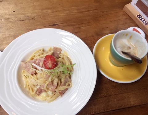挺不好找的文艺店,环境真的很舒服,焦糖玛奇朵不错,奶油培根面培根还可以,面的味道奶味太淡咸味重了点,南瓜汤南瓜味不浓郁,巧克力熔岩也是造型比较特别而已~
