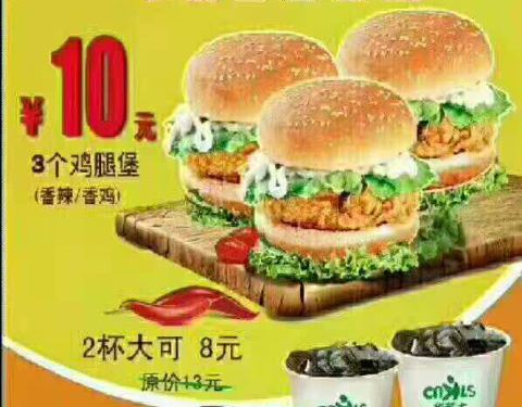 赶上周五+28号两个活动 要了可乐汉堡鸡米花薯条 很划算哦 环境好上餐速度也快 *٩(๑´∀`๑)ง*