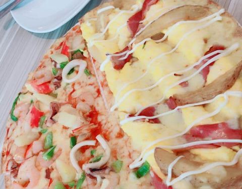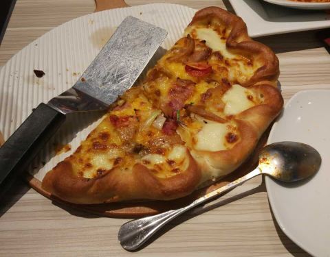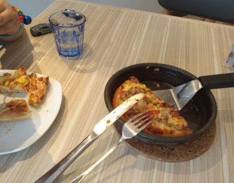 - 披萨味道很一般,饼特别特别厚,而且硬,没什么味,焗饭味道还不错,但是里面就只有关东煮是什么鬼哦