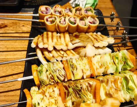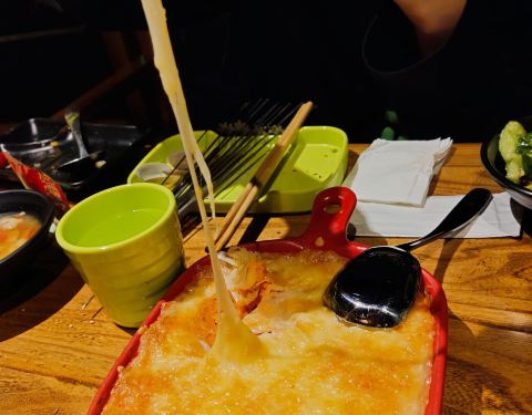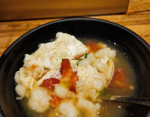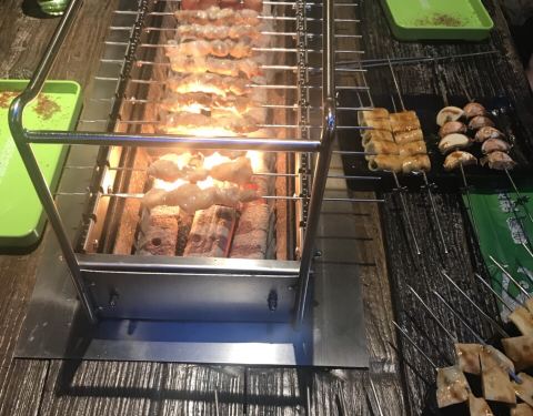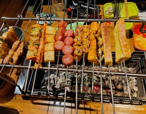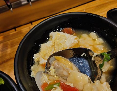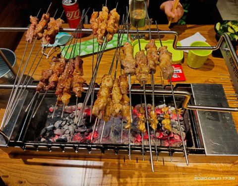 安排,一个下着小雨的晚上去的。 店里第一桌,服务生一律黑色体恤,偷偷说下,一个小帅哥金边眼镜,斯文点的帅气,一位小哥儿眉毛黑黑,很精神ฅ( ˃̶˙ω˙˂̶ ฅ)拍拍我 这边烤肉不用全程服务人员给烤,说是可以更好的掌握火候,让食客专心品尝美食[调皮]话说我不太习惯这种操作,有点别扭,感觉吃的有点放不开⌯'ㅅ'⌯ 呼伦贝尔羊肉串,五星推荐,羊肉嫩,说是一特色,做灰机来的羊肉[色][色] 那个金针菇,很入味的同时还不老,必点菜。 西红柿海鲜疙瘩汤,嘎啦肉,味鲜美。 菜量大,实惠好吃。