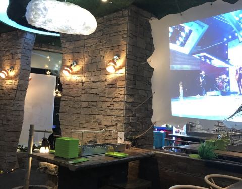 冬天也阻挡不了我想打球的心情,当然,夏天去打完球适合野馆,冬天就适合烤肉啦!跟朋友一起在体育街打完球去旁边搓了一顿[薄荷]环境:环境惊艳到我了,很有感觉,投影幕布像是一张寻宝图,跟烤炉很配,烤肉都是现烤...
