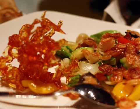 环境很好,参加宴会在这儿,服务也非常不多,菜品种类比较多,菜单制作也很精致。喜欢牛肉,口味比较好,荷塘小炒盘饰非常精致,烤羊排用了比较原始的方式烤制,味道纯粹,只是加了普通调味,突出了食材的新鲜。
