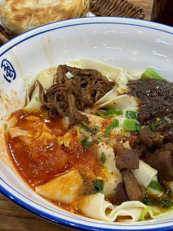 口味:油泼面,不错,面的份量就是通常各饭馆的通用量,扯的也不错。 环境:不大的店,收拾得还算干净整洁,两排桌椅。侧面墙上有一幅大一些的中国画,算是店里明显的装饰了。墙面与桌椅是配套的颜色。 饭口吃面的人比较多。