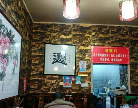 口味:油泼面,不错,面的份量就是通常各饭馆的通用量,扯的也不错。 环境:不大的店,收拾得还算干净整洁,两排桌椅。侧面墙上有一幅大一些的中国画,算是店里明显的装饰了。墙面与桌椅是配套的颜色。 饭口吃面...