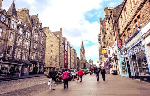 不同的是,有一边是美丽的花园和城堡的景色。它是一条非常热闹的街道,就像一个城市的其他大街一样它是一条非常热闹的街道,就像一个城市的其他大街一样。不同的是,有一边是美丽的花园和城堡的景色。如果你想买一些具有苏格兰风格的东西,有很多的纪念品商店。。