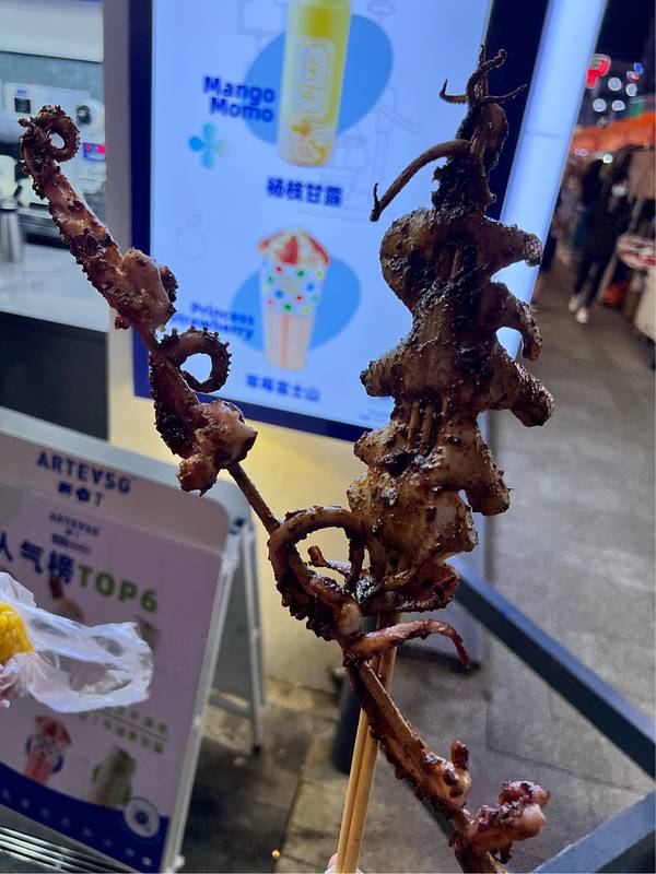 一到下班点 排队超级长。特别长。 好吃到爆炸的东西。 很多好吃的 小吃 需要自己碰青岛很繁华的一条步行街。 而且 面积很大。