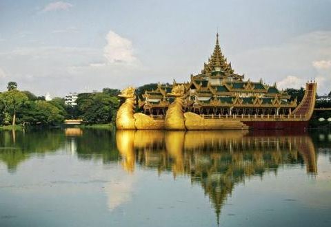 卡拉威宫又名鸳鸯船,位于缅甸首都仰光的皇家湖公园内,是缅甸的又一个标志性景点