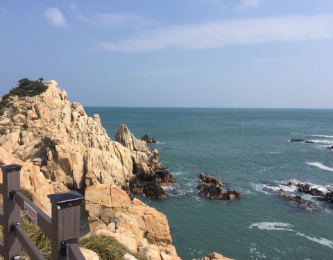 来到蔚山市的大王岩公园观光,海面开阔,怪石嶙峋,有点儿”东临碣石,以观沧海”的意味! 或许知道前几天是就入春吗?我真的不能不感到惊讶。 天还这么热哦,是不是?没有空调就没办法活下去。 但其实在家里只有经常吹空调的话,电费就不敢当, 这时我喜欢到公园里凉快地散步散步。 大王岩公园也是散步好的地方之一。 家剩下的夏季是怎样度过的呢? 可以 一边听着波涛声一边在海边溜弯儿的大王岩公园呢怎么样? 这么热的夏天,很适合散步路线哦。 海浪拍击礁石的轰隆声似乎要把其他的坏思绪都淹没。 这样的地方才是带来真正的治愈吧!