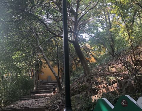 苏州东山占地面积其实很大的,莫厘峰应该是最高峰了。从雨花胜境大门走进去便是一路向上,先是有台阶的山路,过了一会就走了一段盘山公路,接着又是台阶。路程挺长的,我们估计走了近一个小时才到顶峰。站在山顶可以俯瞰太湖风光,山顶还有一座庙。雨花胜境门票30元。