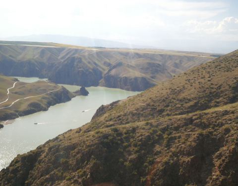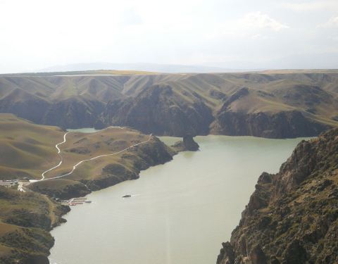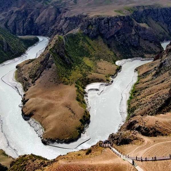 峡谷内地势险峻,悬崖峭壁,峡谷的平均深度都在七八百米,水的落差层层叠叠。站在山上鸟瞰峡谷,纵观全景,整个峡谷美景尽收眼底。峡谷之中,美丽的阔克苏河蜿蜒曲折,河水咆哮奔腾,汹涌澎湃,落差三四百米,形成了壶口瀑布、九曲十八弯、鳄鱼湾等自然景观。160元门票包括游船来回和景区交通车,景区的车是必须乘的,共有三个景点游览,先乘15分钟左右的游船进入,游览完后再乘船出景区