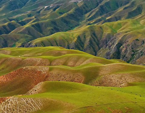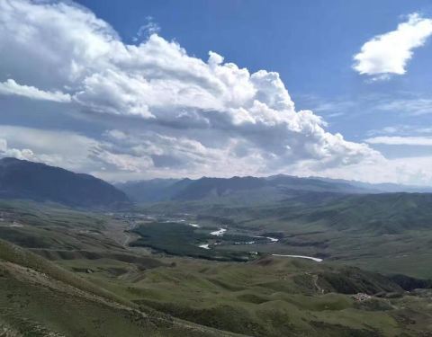 峡谷两岸到处可见类似“人体草原”的地貌景观。阔克苏大峡谷位于新疆特克斯县。周围群山环绕,山峦重叠阔克苏大峡谷位于新疆特克斯县。居高俯瞰,绿色草原从谷顶向下蔓延。九曲十八弯的阔克苏河在谷底曲折流转,河水呈乳白、碧绿、翠绿三种颜色,给人以壮丽、秀美之感。周围群山环绕,山峦重叠。峡谷两岸到处可见类...阔克苏大峡谷位于新疆特克斯县。居高俯瞰,绿色草原从谷顶向下蔓延。九曲十八弯的阔克苏河在谷底曲折流转,河水呈乳白、碧绿、翠绿三种颜色,给人以壮丽、秀美之感。周围群山环绕,山峦重叠。峡谷两岸到处可见类似“人体草原”的地貌景观。 展开