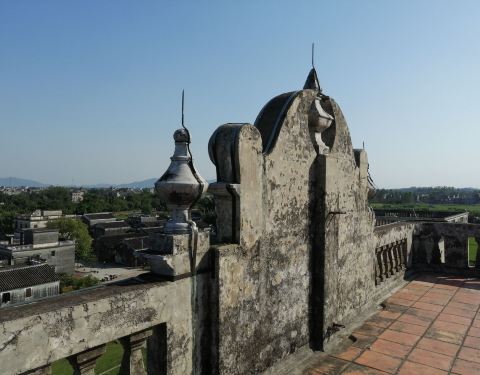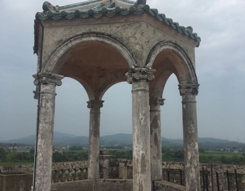 虽然不是开平最高的碉楼但一定是开平最有名的碉楼,原因就是《让子弹飞》的最主要取景地,走到顶层露台,看到那个小亭子是否想到发哥的很多场景都在这里再现了?楼内保留得也不错,还能看到楼主和三位夫人的相片...
