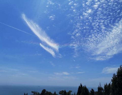 长岛上面的这座比较出名的山野长山啊,然后这个常山这块的下面呢,就是黄渤海的分界线,差的不是特别大,但是也能够看得比较清楚啊,好像还是可以的