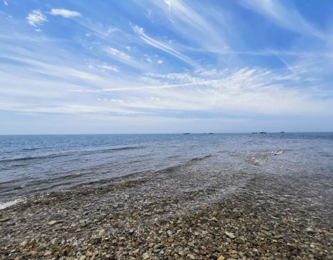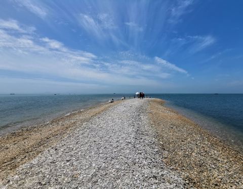 ...人们过度的采集,现在长山尾球石几无,海滩上更多的是人工运去的碎石块,公园已严令禁止游客捡拾球石自然奇观——黄渤海分界线 中国有四大海域,从北到南依次是渤海、黄海、东海和南海。海域是人为划分的,分界线自不明显。而黄渤海分界线,却因潮汐、波浪和色彩之差异而泾渭分明,可谓世界奇观。 黄...自然奇观——黄渤海分界线 中国有四大海域,从北到南依次是渤海、黄海、东海和南海。海域是人为划分的,分界线自不明显。而黄渤海分界线,却因潮汐、波浪和色彩之差异而泾渭分明,可谓世界奇观。 黄渤海分界线大致是辽东半岛的老铁山与山东半岛的田横山之间的连线。长山列岛,就如遗落的珍珠,点缀在这条线上。 从田横岛蓬莱岬来看,黄渤分界线并不明显;但从长岛林海公园黄渤分界碑处观看,黄海和渤海潮头对立,一道S形的交汇线清晰可见,形似“太极图”,这就是长山尾,传说全真教丘处机曾到此采气。 长山尾位于林海公园的最南端,由珠矶卵石堆积而成,由阔而尖,弯曲飘逸,形似“马尾”飘入海中。涨潮时“马尾”仅长两百多米,落潮时也只有四百多米,但其水下延伸部分却达两三公里,又恰与黄渤海交汇处重合,这种奇特的海积地貌世所罕见。据长山列岛国家地质公园解析,海流泥沙纵向运动至海岸与岛屿间时,横断面变小,波浪在崖边和岛角发生折射和绕射产生波影区,波浪进入波影区内因能量减少,泥沙容量降低,沿岸(岛)移动的部分泥沙在岸(岛)边堆积下来,形成向外伸出的砾嘴,天长日久就形成了长山尾。 据说每逢大潮,伴着与潮流相向的偏南风,浪借风势、潮借涌力,两海交汇搏击汹涌、蔚为壮观。 今天这种波浪交汇并不强烈,我们只看到一段S形波涛的痕迹。我们下到了海滩,站在长山尾分界线的海里,真是“一步跨黄渤,双脚踩两浪”。黄海与渤海的浪花相击、一起碰撞,亲吻我们的脚丫,那是一种很奇妙的感觉…… 由于人们过度的采集,现在长山尾球石几无,海滩上更多的是人工运去的碎石块,公园已严令禁止游客捡拾球石。 展开