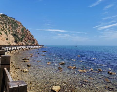 长山尾位于林海公国内,从玻璃栈道下到海滩,沿海滩行至长山尾长山尾位于林海公国内,从玻璃栈道下到海滩,沿海滩行至长山尾。在长山尾可近距感受渤海与黄海的交汇,在山头渤黄海分界碑远望渤黄海分界后,再近距感受一下就完美了。