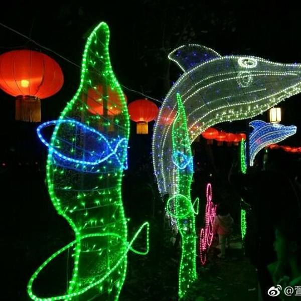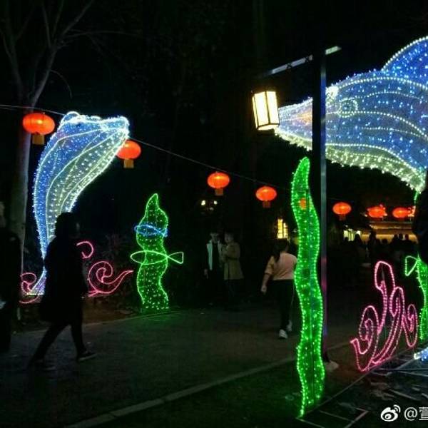 一路闲聊漫谈,感叹时光荏苒,又是一年元宵时。也发现今年芝山公园很多花灯创意小细节。比如利用高低山势做成的动态银光瀑布,小二垂钓处,一条红色鲤鱼跃龙门,再如海草和海豚相呼应的蓝色走廊。
