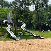 芝山公园最让人惊喜的,是它“不端着”的亲民气质——它没有刻意追求“网红打卡点”,而是把设施服务落到了市民的日常需求里。公园划分了多个功能区:儿童活动区有滑梯、秋千与沙坑,周末总能听到孩子的笑声;老人活动区有健身器材与棋牌桌,清晨常能看到老人打太极、下象棋;山林游憩区的步道设计得很贴心,坡度平缓处适合散步,陡峭处加装了扶手,还每隔50米就设置了休息石凳,方便老人与小孩歇脚。