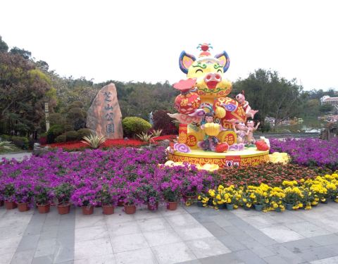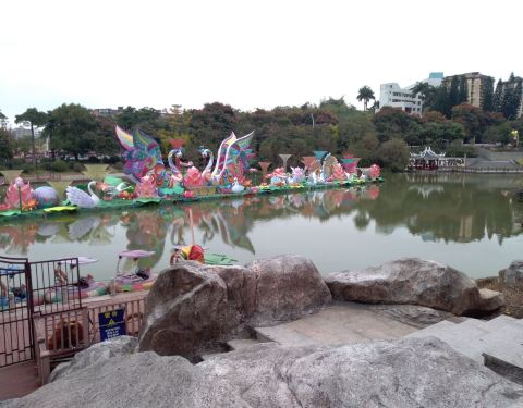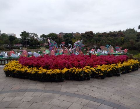 也发现今年芝山公园很多花灯创意小细节。果然游人如织,我们三个大人三个小朋友从相对僻静的沿河小径走起