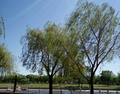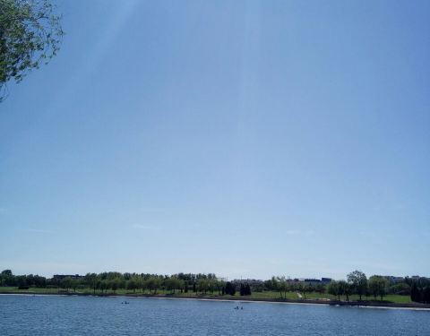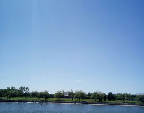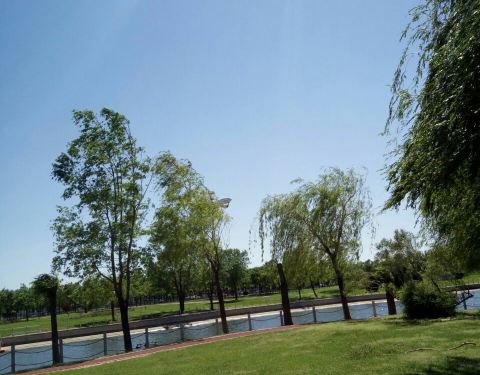 西湖园是唯一一个可以看到飞机起落的公园,就围绕着北京首都机场中间跑道尾设计起来的。夏天绿草如茵,因为完全免费,而且二十四小时开放,有许多搭帐篷的一家人。有一池湖水,很凉快。