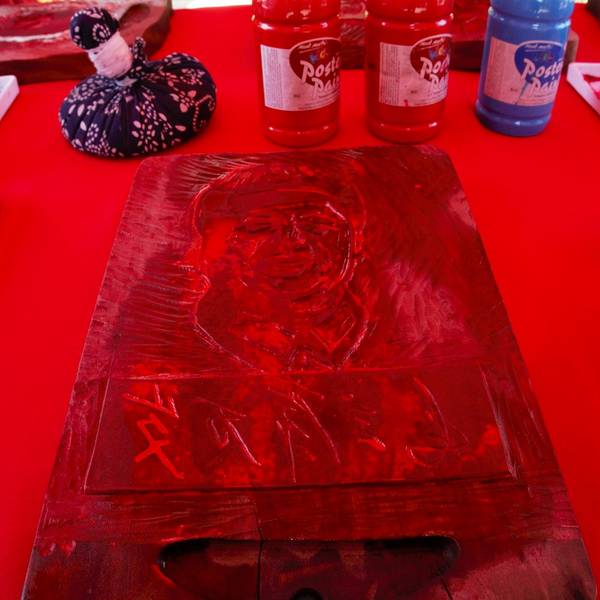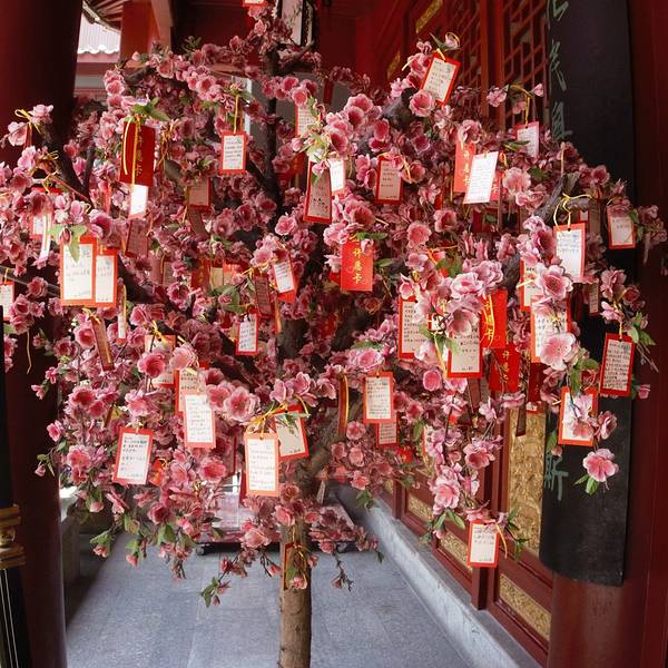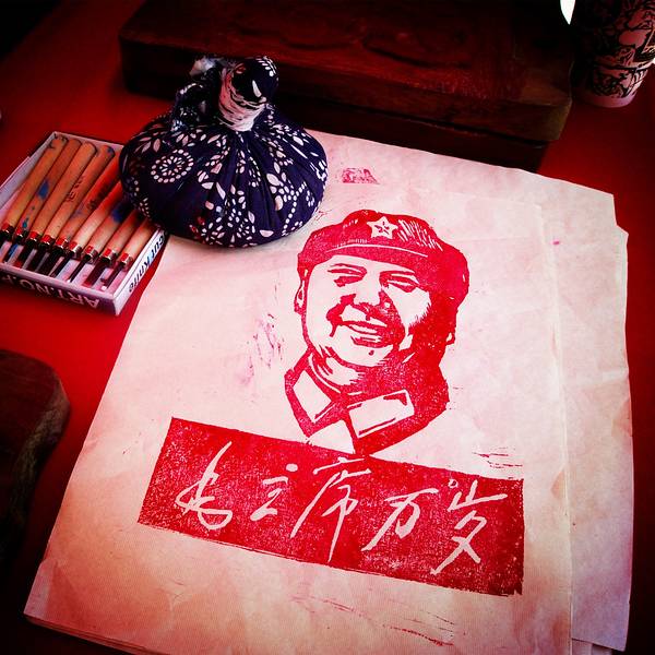 老板人很好,为我们讲解刻版画的制作方式,而且有问必答,问了下价格一张10元,小余砍价说15元2张,老板说行。后来是15元拿了人家老板3张。有一张小余嫌弃印的不好看,老板说那就重新印一张。 后来把印的不好的那张也一起包装好给小余。【许愿树】