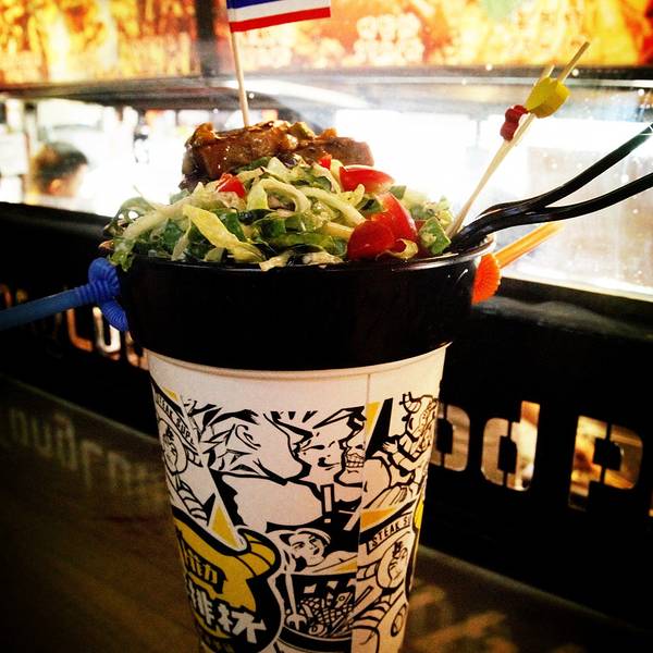 后来把印的不好的那张也一起包装好给小余。看了一下内容,感慨为嘛人家的字都写的这么好看~。【许愿树】罗记旁边的一条小食街【沙拉牛排杯果汁】