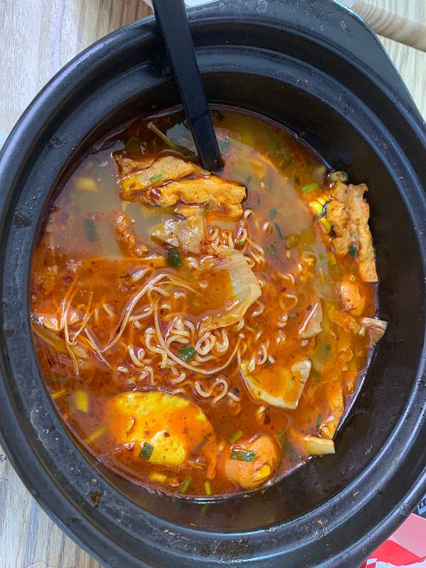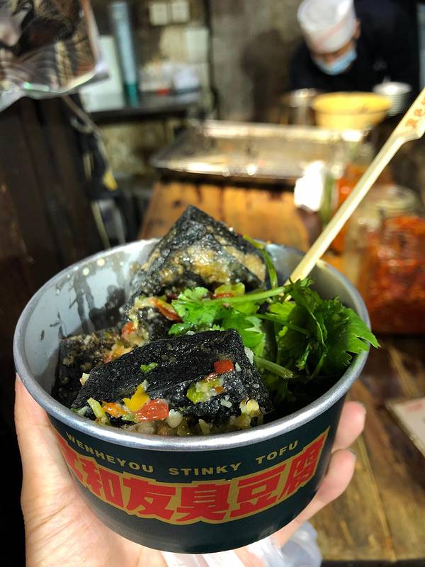 盯着他叫他不要放辣 最后叫他给我滴了一丁点我试试 妈耶 也太辣了吧!文和友臭豆腐