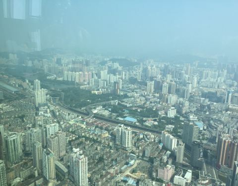 京基100可以购票上观光层体验,乘极速电梯很快就到达96层,一览深圳景色