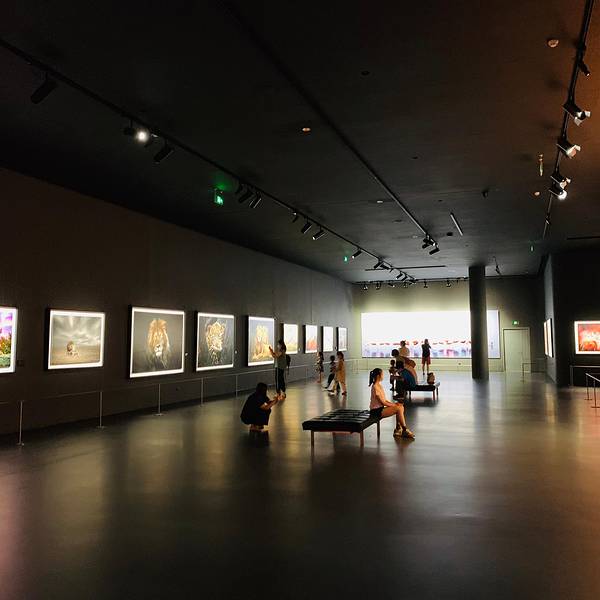 画廊展示厅,完全处于黑色的暗调之中,大幅的摄影作品在射灯的映射下分外醒目。 罗红先生常年在野外拍摄大型野生动物,多次走进非洲,南极和北极圈,拍摄非洲各类繁多的野生动物,拍摄濒危的企鹅群落和北极熊,航拍挑战艰难的气候。作品或大气,或唯美,或充满情感的细节。向我们分享着这个地球的美丽。 展开