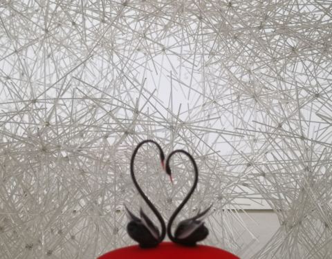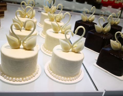现代的艺术展馆,搭配着极具有东方韵味的松柏,水中畅游的锦鲤,湖面上的氤氲的雾气,营造出仙境一般的感觉。两只美丽的黑天鹅,休闲自得的享受这片美景。黑天鹅体验店,贯穿纯白色了这一基调,在硕大的空间,每一个展示出来的蛋糕都不再只是美食,而是一件艺术作品。旁边还有个咖啡店,和餐厅,在餐厅里吃下午茶,坐在落地窗一边欣赏美景,一边享用法式甜品工艺与精致到毫厘的日式美学,出品黑天鹅定制正统贵族英式下午茶。感觉自己会变成仙女!