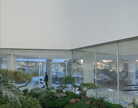 门票100元。 院里的景观设计不错,高低错落的松柏,很有造型感。放映厅的纪录片定时播放。很有画面感