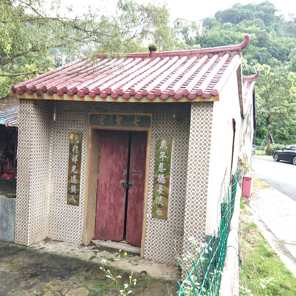 深圳七圣宫大殿正门七圣宫大殿外七圣殿门上七圣宫的阶梯旧七圣宫,要继续往前走一小段路,才到新七圣宫。上七圣宫经过的欧式建筑。山脚文博宫。