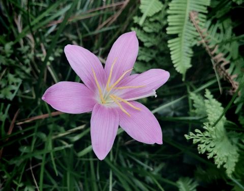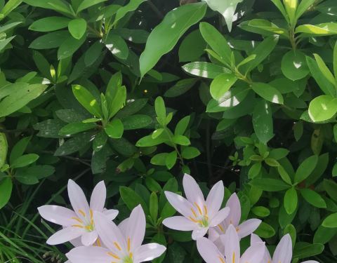 公园里很多地方都有花茎直立的石蒜花,有粉红色的,也有白色的,个人觉得这种花很漂亮,遇见了有时总忍不住要仔细观察一下,看她的花瓣、花蕊、花茎及与周围植物的搭配。