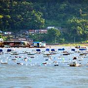 去霞浦的东安,主要是看十分壮观的鱼排。在这片海域,分布着很多网箱,网箱上还建有渔民居住的小房子,网箱成片成片的,似乎望不到边,俨然是"阡陌交通"、"参差十万人家",号称"海上威尼斯"。这里养殖的有海参鲍...