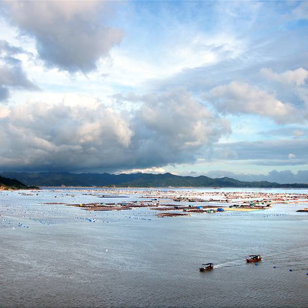 去霞浦的东安,主要是看十分壮观的鱼排。在这片海域,分布着很多网箱,网箱上还建有渔民居住的小房子,网箱成片成片的,似乎望不到边,俨然是"阡陌交通"、"参差十万人家",号称"海上威尼斯"。这里养殖的有海参鲍鱼等。网箱间,以船为交通工具,在这里玩也需租条船,开到油菜屿,登岛从高处看“海上渔村”。霞浦县城到东安有班车。